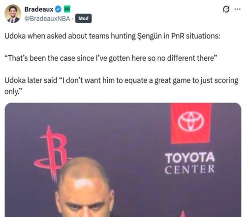 很明显,乌度卡也对申京的防守表现不满,甚至明示其在防守挡拆方面毫无长进。