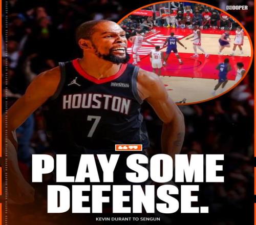 第三节还剩10分钟时,申京直接被克努佩尔一步过掉轻松上篮,直接惹怒一旁的杜兰特,KD朝着申京摊手吼道:“你倒是防一下啊!”