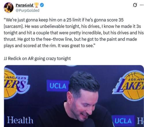 凭借这样的表现,里夫斯成为湖人队史单场拿下35+得分用时最少的球员。
