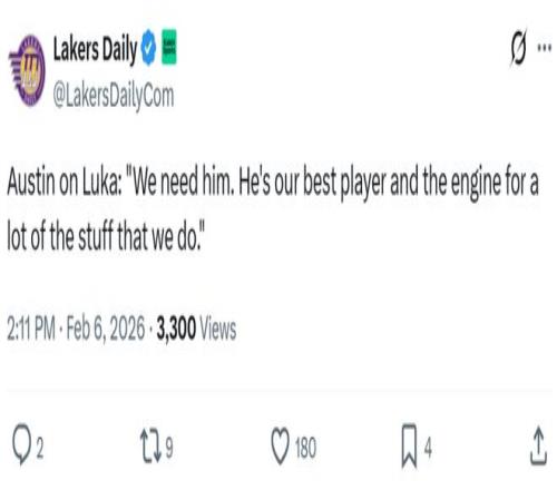 湖人官方也在半场结束时确认消息真实性,指出东契奇因腿筋酸痛本场将不会回归,确定缺席下半场的争夺。