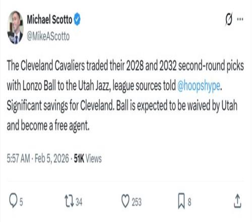 反复饱受伤病困扰的鲍尔,本赛季表现下滑严重,骑士队不得不打包两枚次轮签将他价值1000万美元的合同送出去,爵士官方也火速将其裁掉。