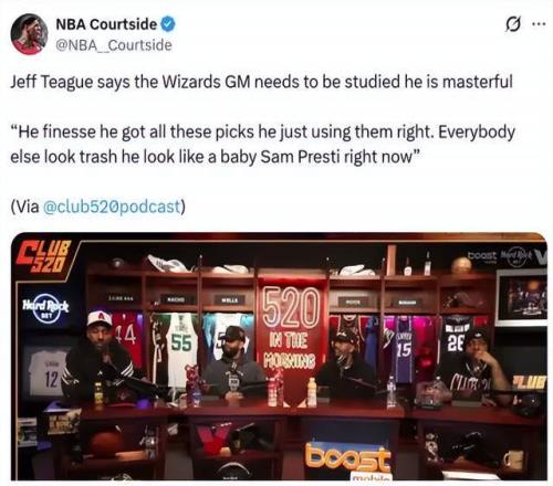 在交易市场的两招大手笔之后,前NBA球员蒂格直接在节目中公开称赞奇才总裁迈克尔·温格的操作: